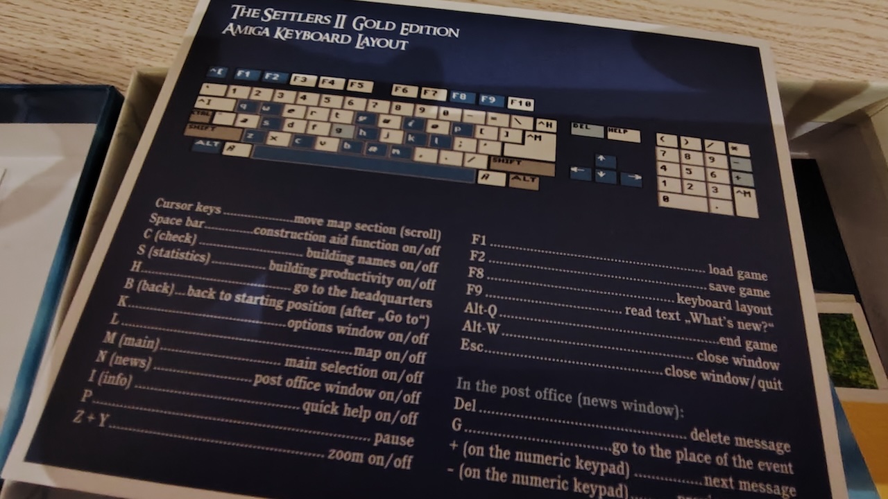 With The Settlers II for the Amiga, I got all the info I needed to make it run on my 68k or PowerPC-based Amiga. A CD inside the box, an Amiga Keyboard Layout guide, including a manual that I cover a bit later.